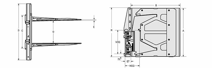 Capacity 承載能力(kg)Catalog Order NO 型號(hào)Mounting Class 安裝等級(jí)Load Center載荷中心(mm)Opening Range張臂范圍(mm)Arm Height臂高A(mm)Arm Length臂長B(mm)Arm Thickness臂厚E(mm)Overall Width總寬D(mm)Overall Height總高H(mm)Vertcial Center Of Gravity垂直重心VCG(mm)Hook Spread上鉤外側(cè)間距(mm)Weight 自重(kg)Effective 失載距ET(mm)Horizontal Center of Gravity 水平重心CGH(mm)